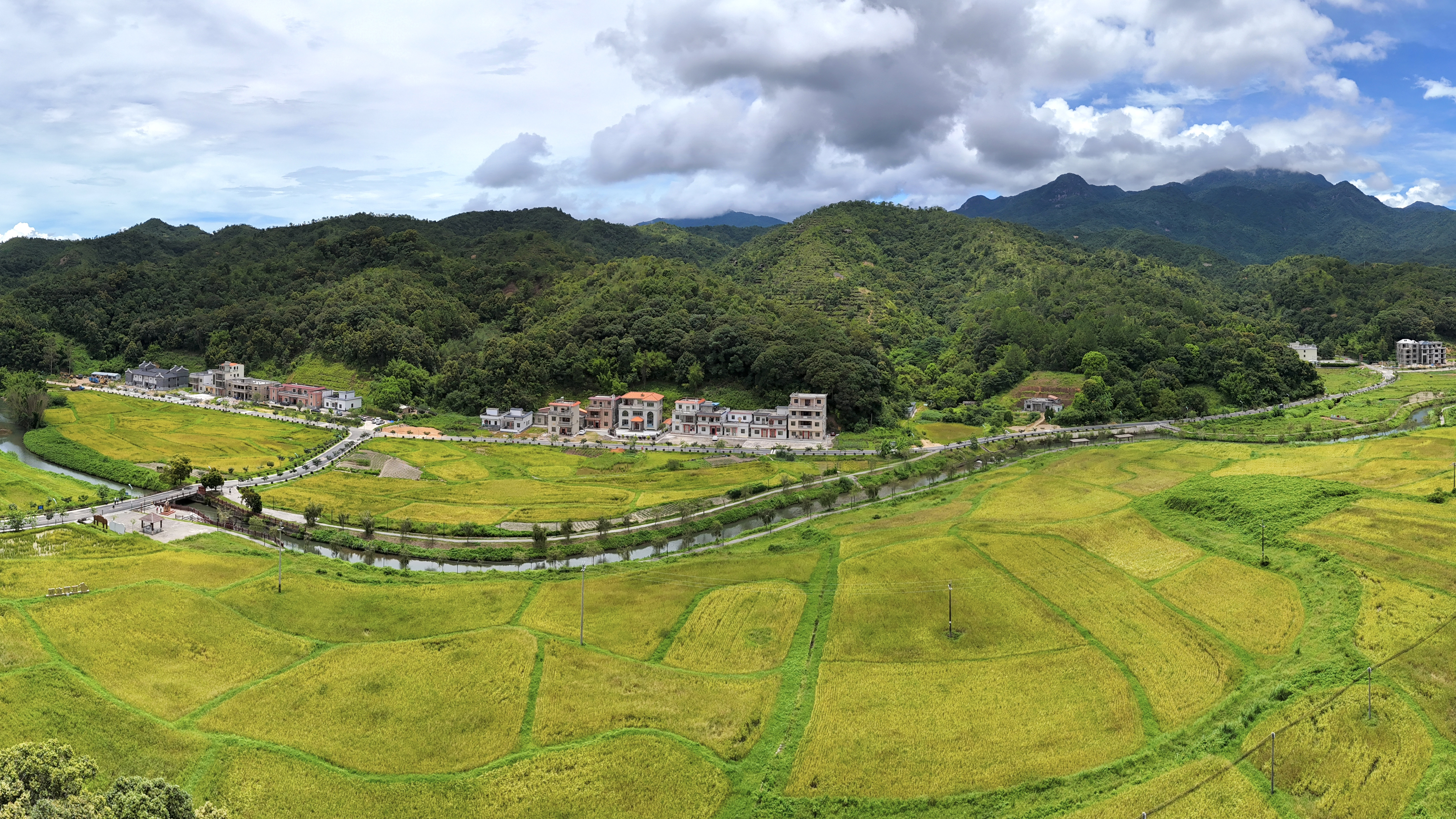 寶口鎮(zhèn)佐坑村連片豐收的稻田。 本組圖片 惠州日?qǐng)?bào)記者洪鵲兒 通訊員周偉浩 攝