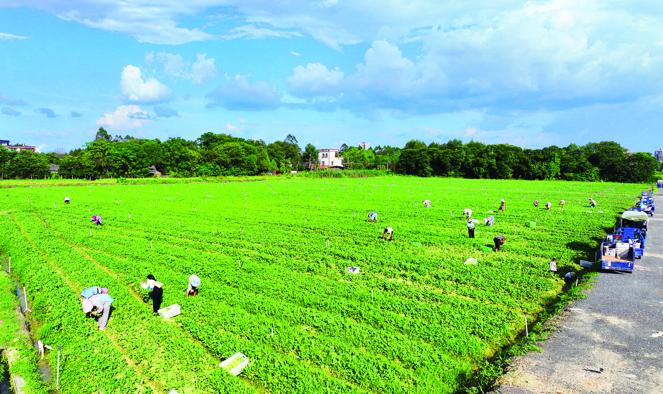近段時(shí)間,位于博羅縣石壩鎮(zhèn)石壩村的蔬菜種植基地里,一片片綠油油的菜心青青脆脆、長(zhǎng)勢(shì)喜人,隨處可見菜農(nóng)正在田間忙著采摘、分揀、裝筐,一派喜人的豐收繁忙景象。
