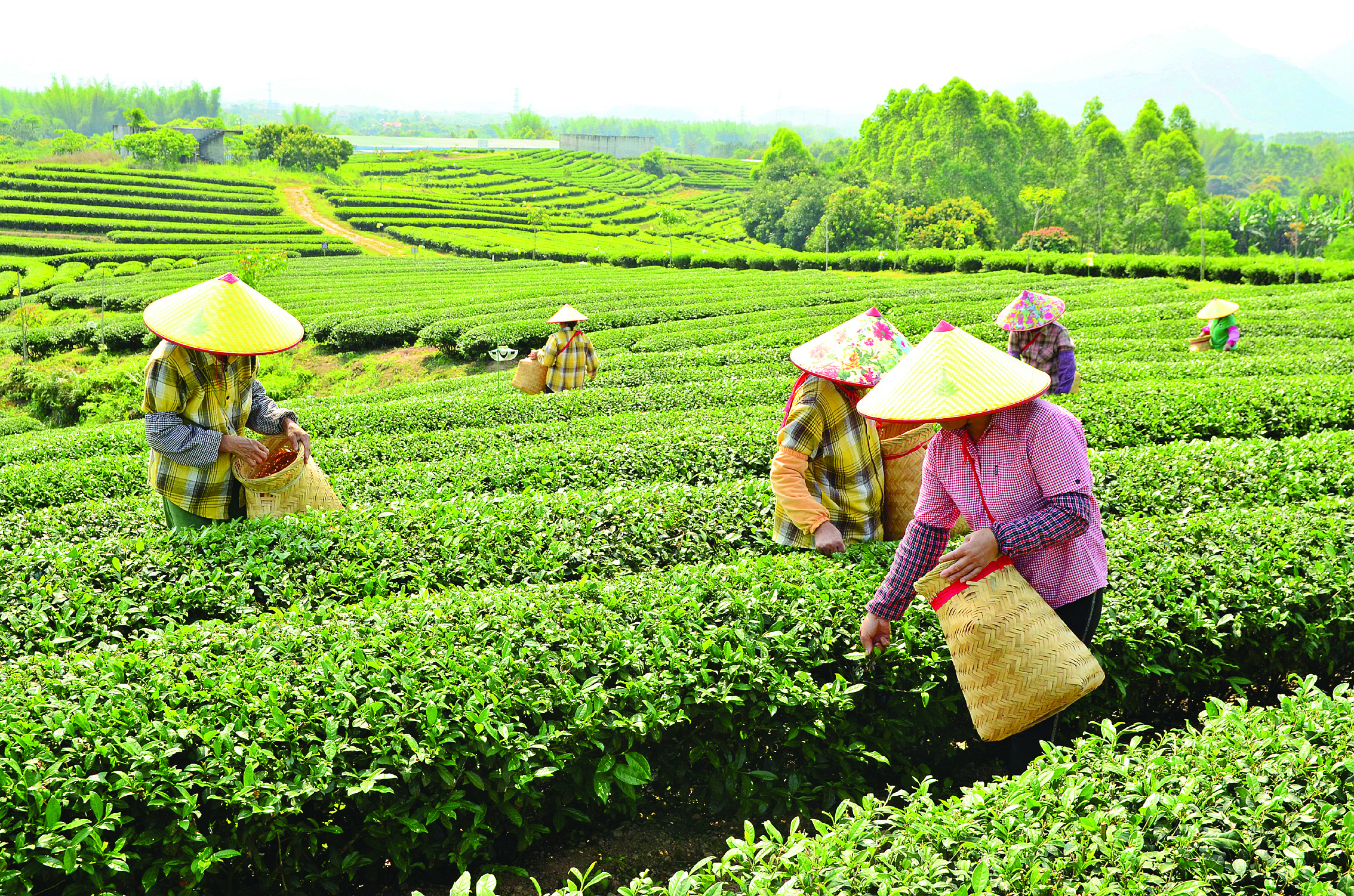 村民在采摘茶葉。