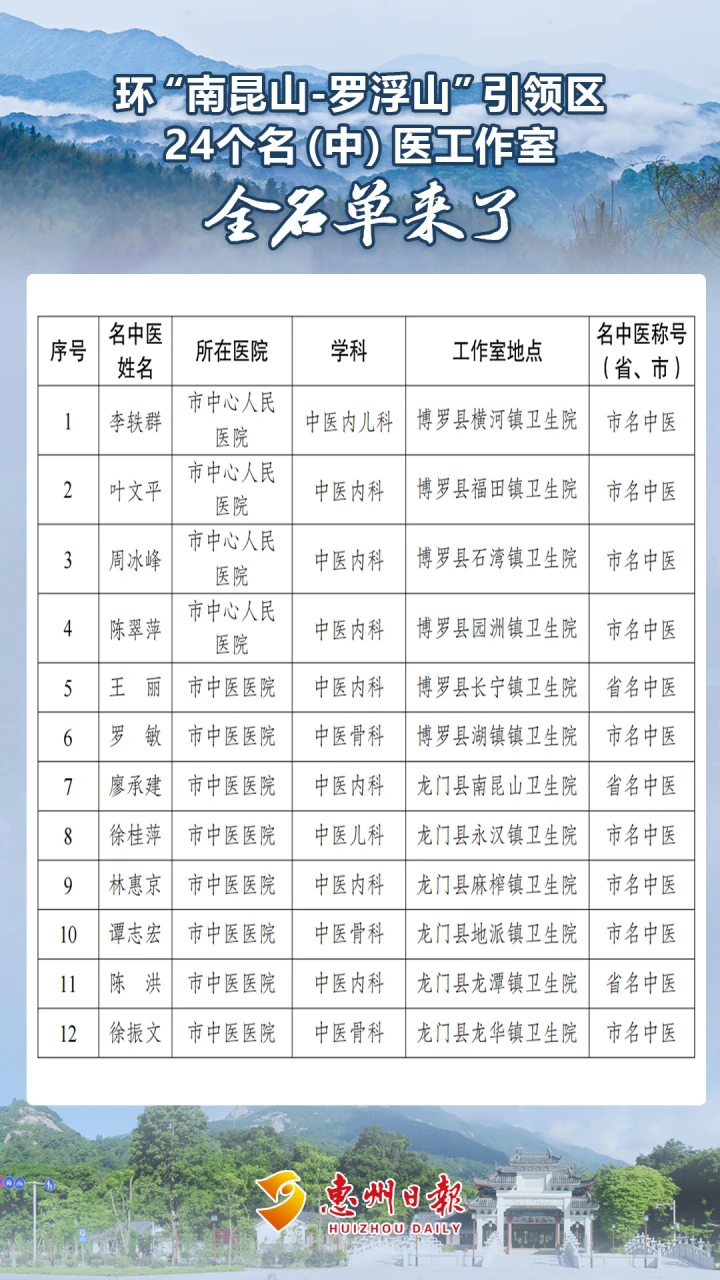 ■環(huán)“南昆山-羅浮山”引領(lǐng)區(qū)此次建設(shè)名(中)醫(yī)工作室共24個,其中12個名醫(yī)工作室、12個名中醫(yī)工作室。