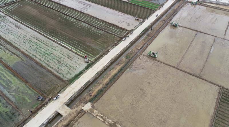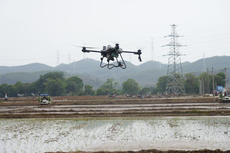 近日,在惠東縣鐵涌鎮(zhèn)小屯村,連片的高標(biāo)準(zhǔn)農(nóng)田里,新型農(nóng)機(jī)、水稻穴直播機(jī)、無(wú)人機(jī)等輪番上陣。農(nóng)機(jī)手駕駛插秧機(jī)在水田中駛過(guò),健壯的秧苗穩(wěn)穩(wěn)地“蹦進(jìn)”水田里。很快,水田便漾起了“綠”波,春耕播種任務(wù)就此完成。與此同時(shí),無(wú)人機(jī)在水田上空來(lái)回飛舞,肥料猶如及時(shí)雨般落下。