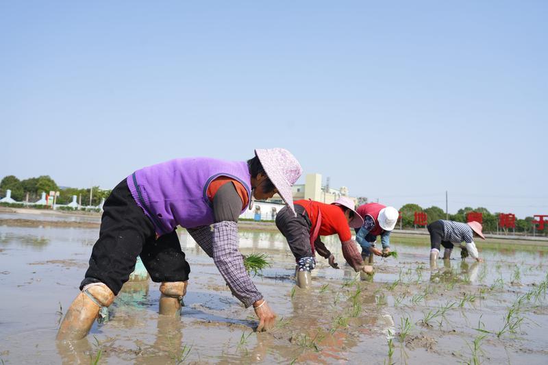 農(nóng)民在區(qū)農(nóng)業(yè)農(nóng)村綜合服務中心試驗田插秧。