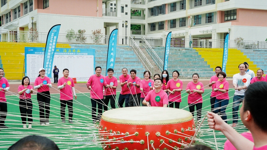 在專業(yè)教練的帶領下,大家完成熱身環(huán)節(jié),運動場上的氛圍也瞬間被調(diào)動起來。隨著裁判的一聲哨響,比賽正式開始;盍蛭饔庐斚龋ㄕ系K闖關賽)項目拉開了運動會的序幕。俄羅斯方塊、穿針引線、穿木屐挑水……這些看似簡單的項目,卻考驗干部職工的團結(jié)協(xié)作能力。大家相互配合,圓滿地完成了各個項目,整個賽場加油聲、歡呼聲此起彼伏,整個過程緊張激烈又趣味橫生。