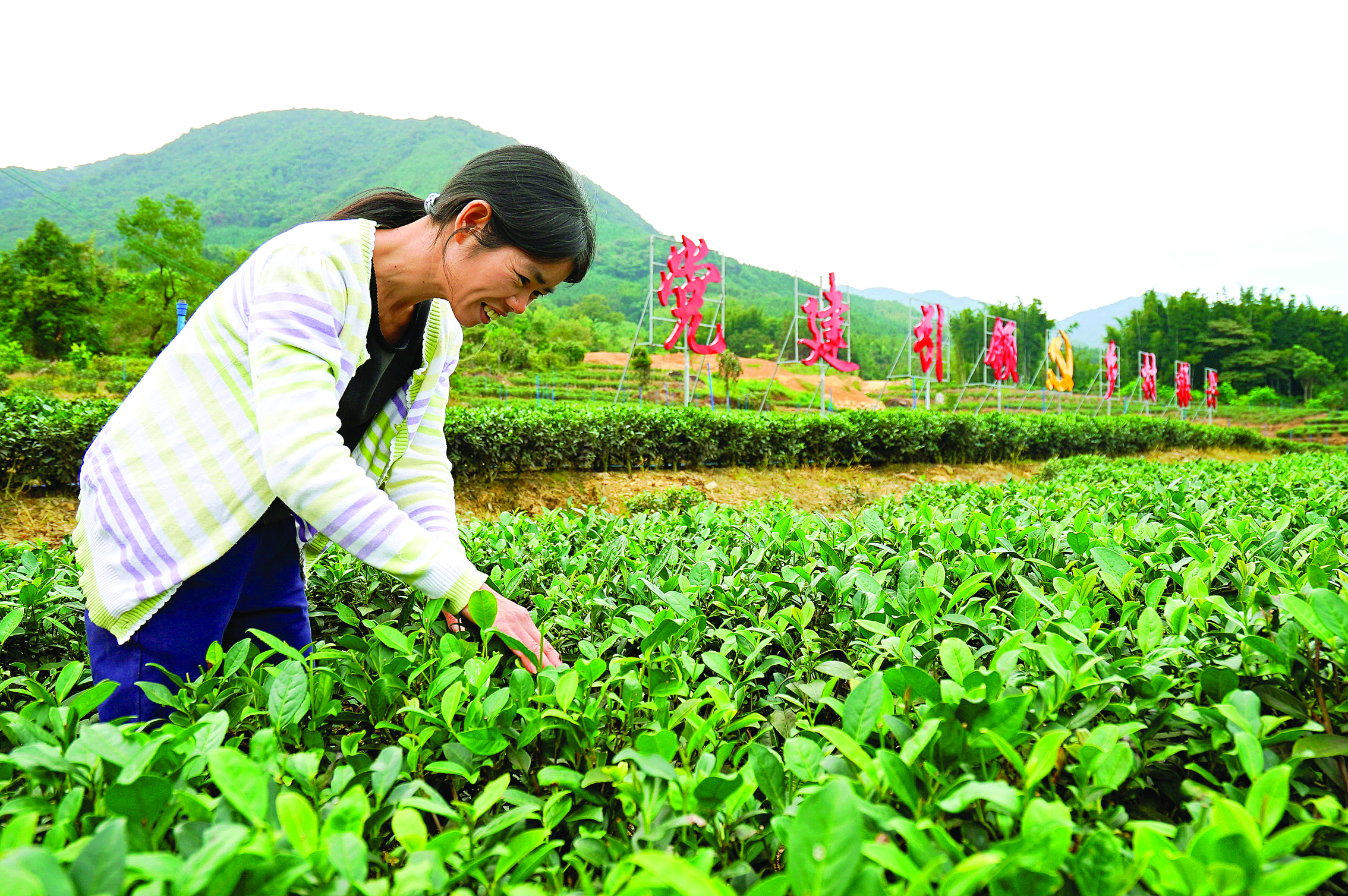 地派鎮(zhèn)陳洞村茶園,農(nóng)戶查看茶葉長(zhǎng)勢(shì)。 惠州日?qǐng)?bào)記者湯渝杭 攝