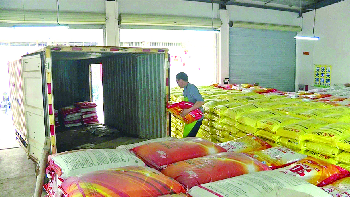 農(nóng)資網(wǎng)點工人正在運送農(nóng)資。惠州日報記者蔡偉健 攝