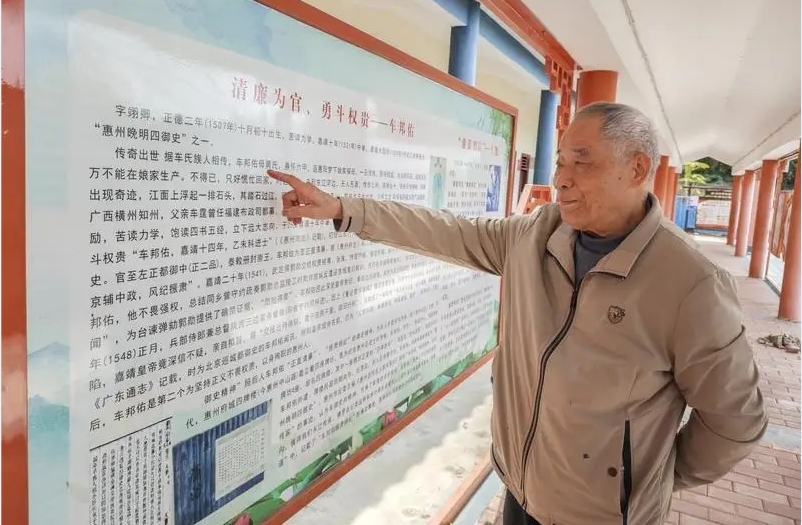 “游御史之鄉(xiāng),品古韻車村!弊哌M車村,人們會對村里的忠廉御史文化留下深刻印象,車氏宗祠、太昌圍屋古民居,訴說著御史之鄉(xiāng)的特色歷史文化。在車村的歷史文化宣講員中,退休老教師車應(yīng)騰在推動車村傳統(tǒng)文化傳承和發(fā)展方面起到了重要作用,也見證了車村近年來的發(fā)展變化。