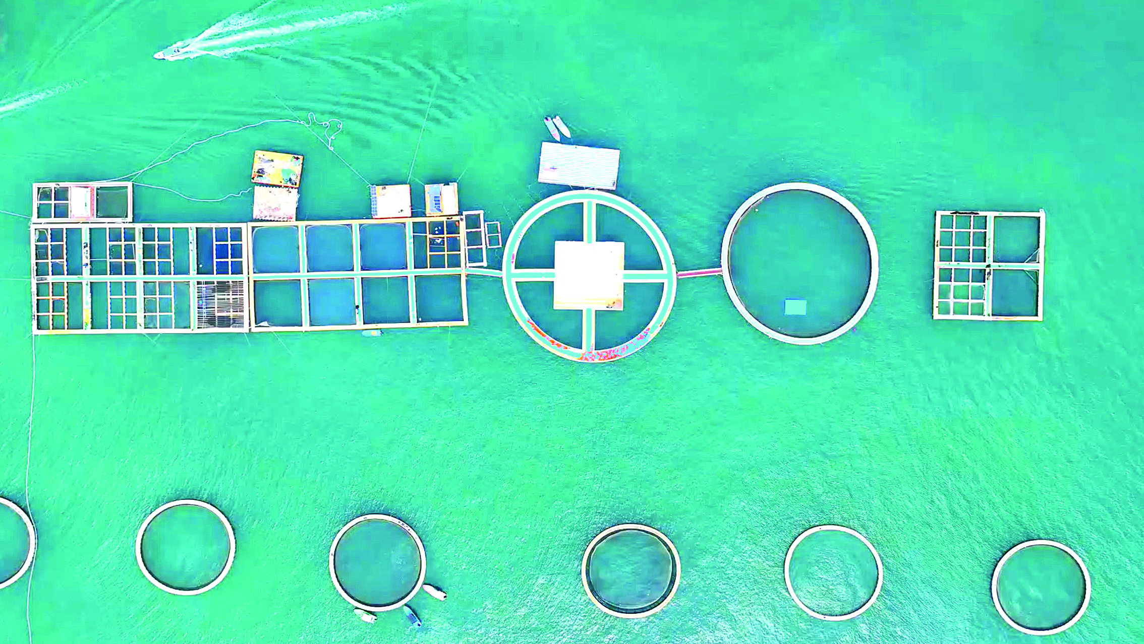 一方海深水網(wǎng)箱養(yǎng)殖示范區(qū);葜萑請笥浾唿S鑫威 攝