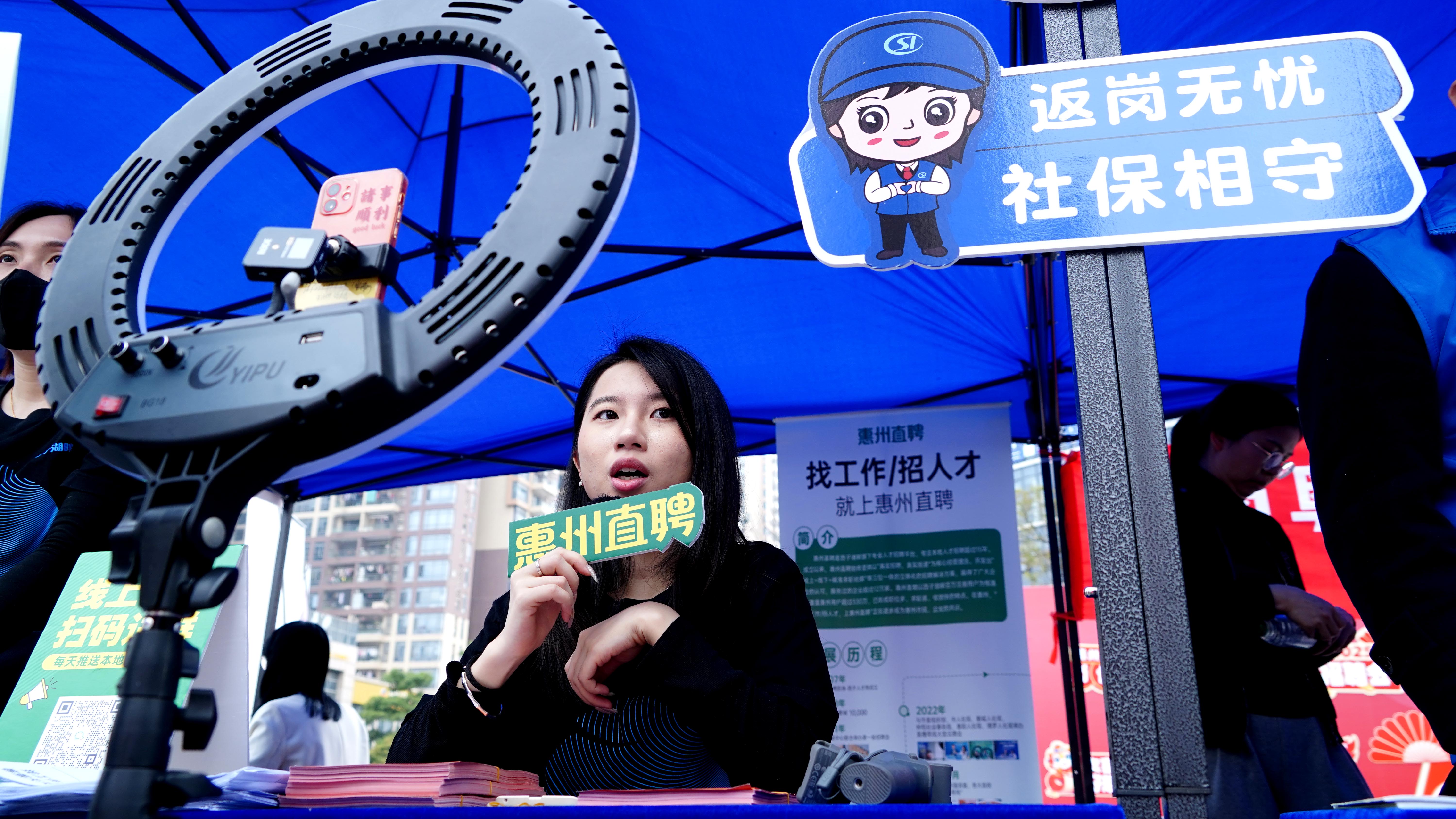 直播帶崗成為招聘會(huì)的新亮點(diǎn);葜萑?qǐng)?bào)記者李松權(quán) 攝
