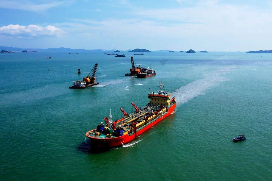 據(jù)介紹,該項(xiàng)目總方量達(dá)2000萬方,項(xiàng)目部累計投入耙吸船、抓斗船、鑿巖船等施工船舶30余艘,作業(yè)高峰期370余人,項(xiàng)目疏浚日產(chǎn)量多次突破20萬方,創(chuàng)造了行業(yè)施工新標(biāo)高。