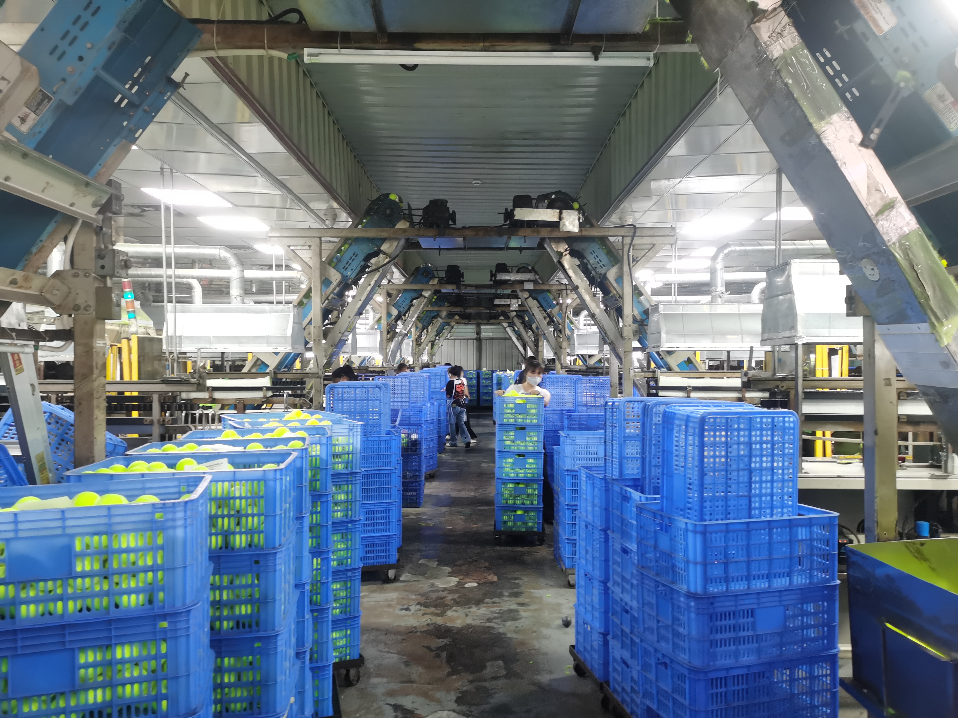走進(jìn)海德運(yùn)動(dòng)器材(惠州)有限公司的網(wǎng)球生產(chǎn)工廠,只見(jiàn)半自動(dòng)化流水線正高效運(yùn)轉(zhuǎn),熒光黃色的網(wǎng)球半成品在傳送帶上勻速移動(dòng),工人們正熟練地進(jìn)行分揀、貼標(biāo)和封裝。質(zhì)檢區(qū)內(nèi),經(jīng)驗(yàn)豐富的技術(shù)人員正逐一檢測(cè)成品球的彈跳高度與耐磨性,確保每顆球都符合標(biāo)準(zhǔn)。