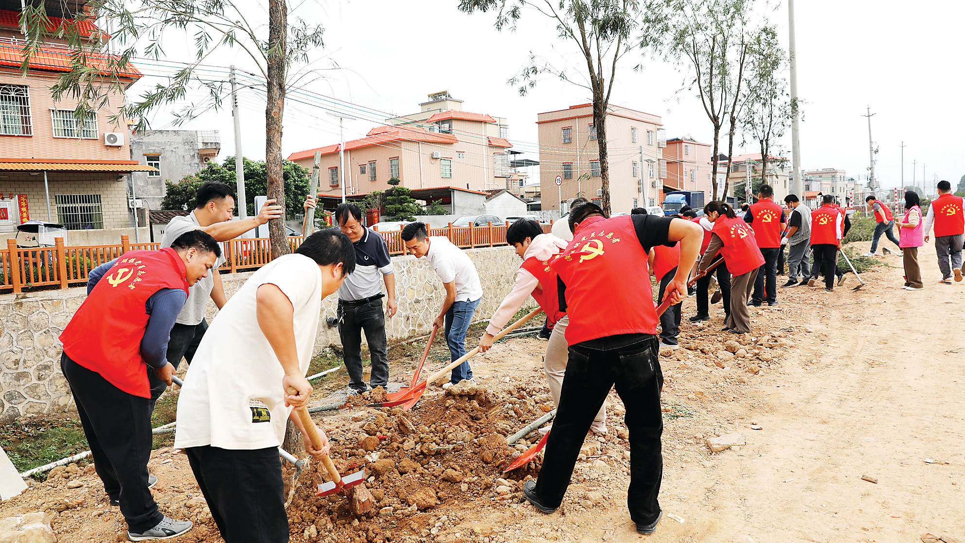 黨員干部在潼湖鎮(zhèn)赤崗村參加義務植樹活動。
