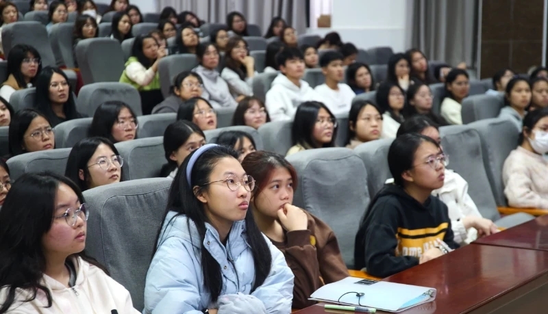 大學生志愿者在認真聆聽培訓課。
