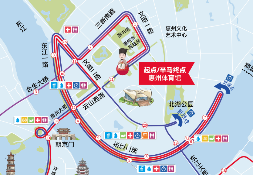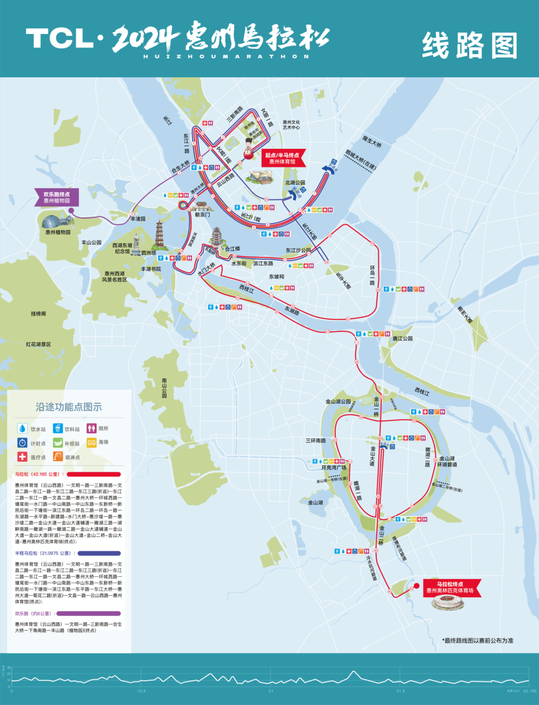 具體公里數(shù)對應(yīng)位置可點擊馬拉松地圖查看