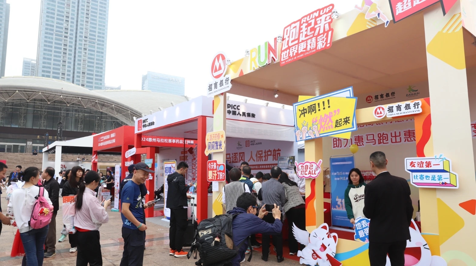 3月16日,參加惠州馬拉松的選手到惠州體育館領(lǐng)取參賽包,而在惠州體育館廣場上舉行的惠州馬拉松博覽會(huì)也吸引了眾多跑友參與。商家們推出了豐富多彩的活動(dòng),并派發(fā)大量福利讓選手“薅羊毛”,不少跑友表示“福利太豐富了,一個(gè)袋子裝不完!