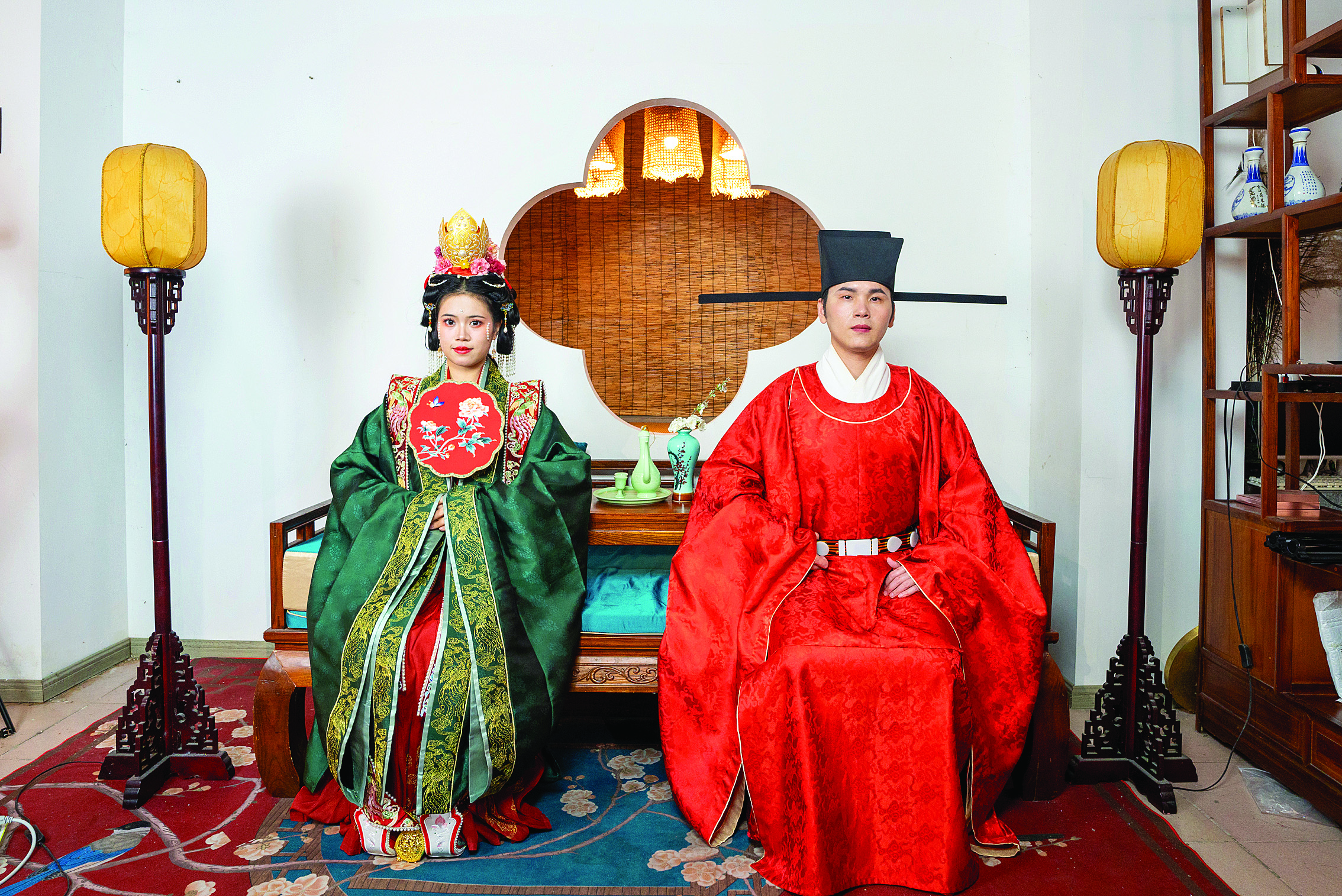 宋式婚禮定妝照拍攝現(xiàn)場(chǎng);葜萑?qǐng)?bào)記者黃昌榮 攝