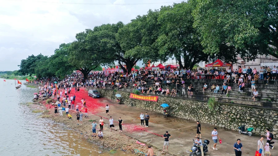 6月11日,博羅縣園洲鎮(zhèn)下南村龍船景活動(dòng)火熱上演。