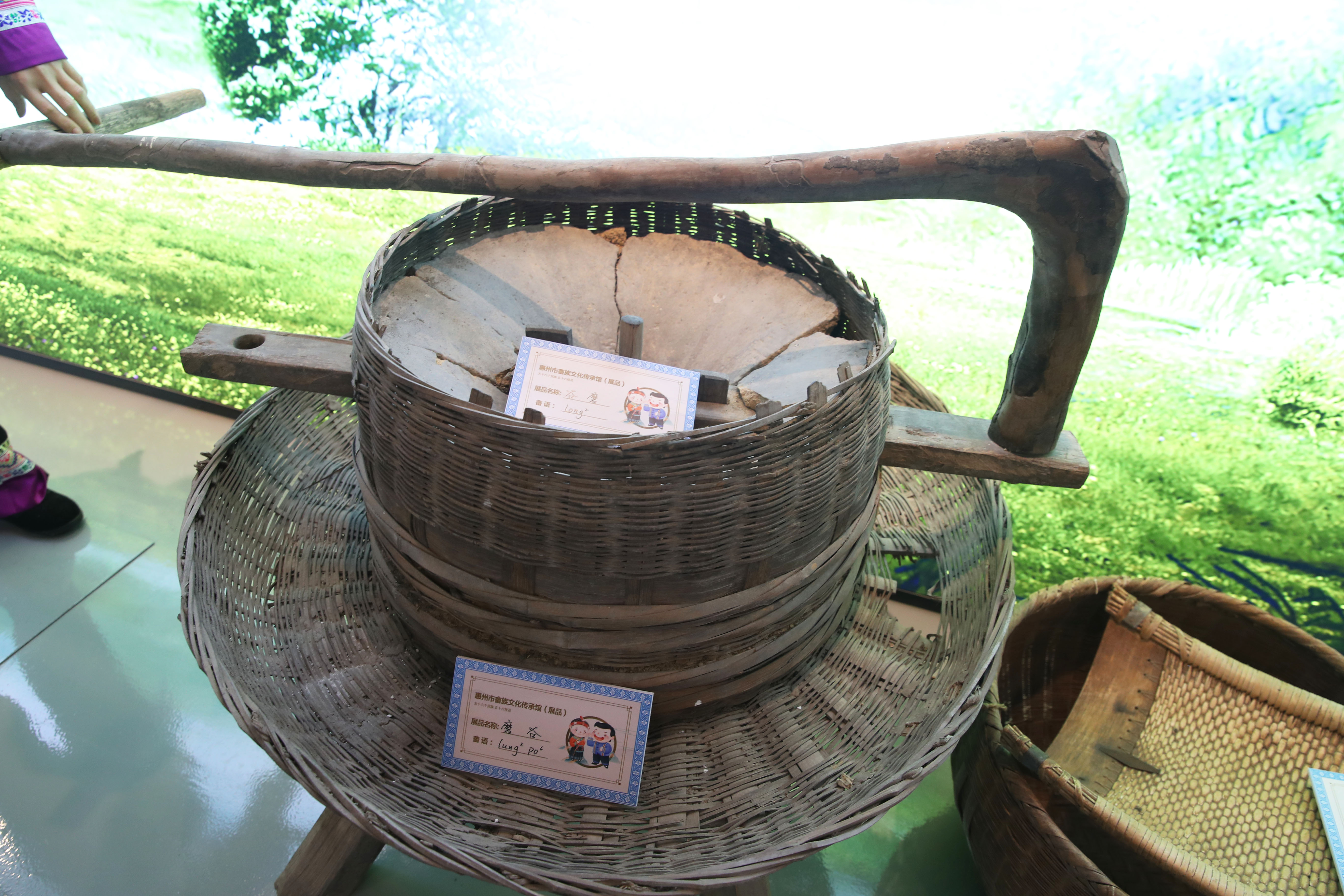 畬族文化傳承館二樓展示了從村里各家各戶收集而來的“老物件”,有竹籃、簸箕、鋤頭、秧鏟、鐵耙、禾叉等,真實(shí)還原畬族人磨稻谷等勞作場(chǎng)景。