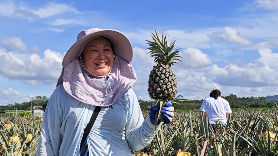 “我們采用臺灣的種植技術(shù),通過專業(yè)化的田間管理,實現(xiàn)鳳梨分片成熟!表f金會說,近幾年來,憑借豐富的種植經(jīng)驗和技術(shù),合作社持續(xù)擴大鳳梨種植規(guī)模,并在廣西、湛江、東莞、陽江等地建設(shè)合作基地,由合作社提供種苗和技術(shù),與當(dāng)?shù)剞r(nóng)戶合作,共同推動鳳梨產(chǎn)業(yè)發(fā)展,目前該合作社的鳳梨種植面積近4000畝。