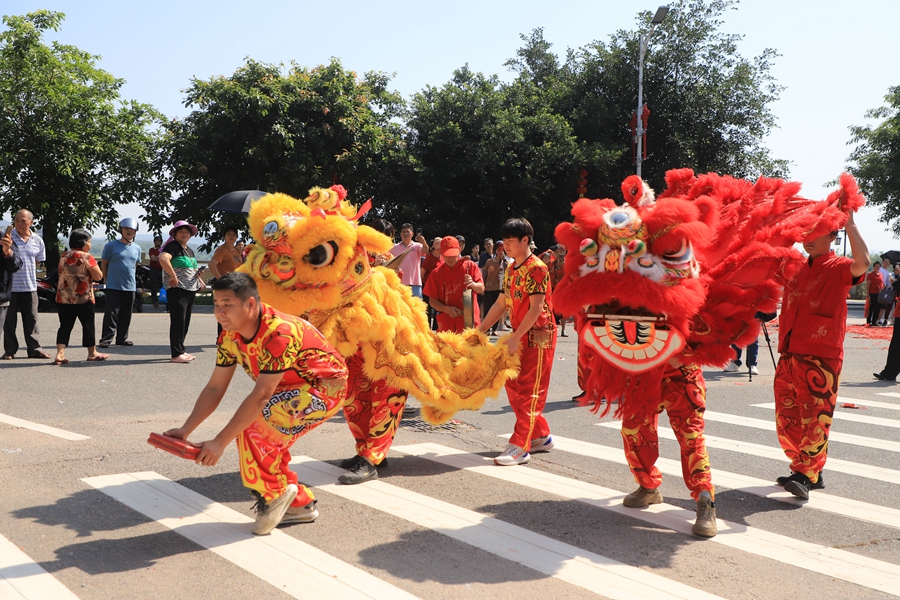 觀音閣鎮(zhèn)菱湖村舞獅文化至今已有100多年的歷史。舞獅隊(duì)以“聲”“形”特有的形式,明快富有朝氣的節(jié)奏和獨(dú)特的藝術(shù)走形,體現(xiàn)了廣大農(nóng)民熱情奔放、粗獷豪爽的精神風(fēng)貌。十字路麒麟隊(duì)也同樣有著悠久歷史。在巡游中,舞麒麟表演根據(jù)鼓點(diǎn)節(jié)奏而變化,引起了群眾的熱烈反響。而源自平安醒獅隊(duì)的蕭氏酷獅團(tuán),時(shí)而跳躍、時(shí)而疾走,時(shí)而威武霸氣、時(shí)而撒嬌調(diào)皮,吸引眾多群眾拍照互動(dòng)。