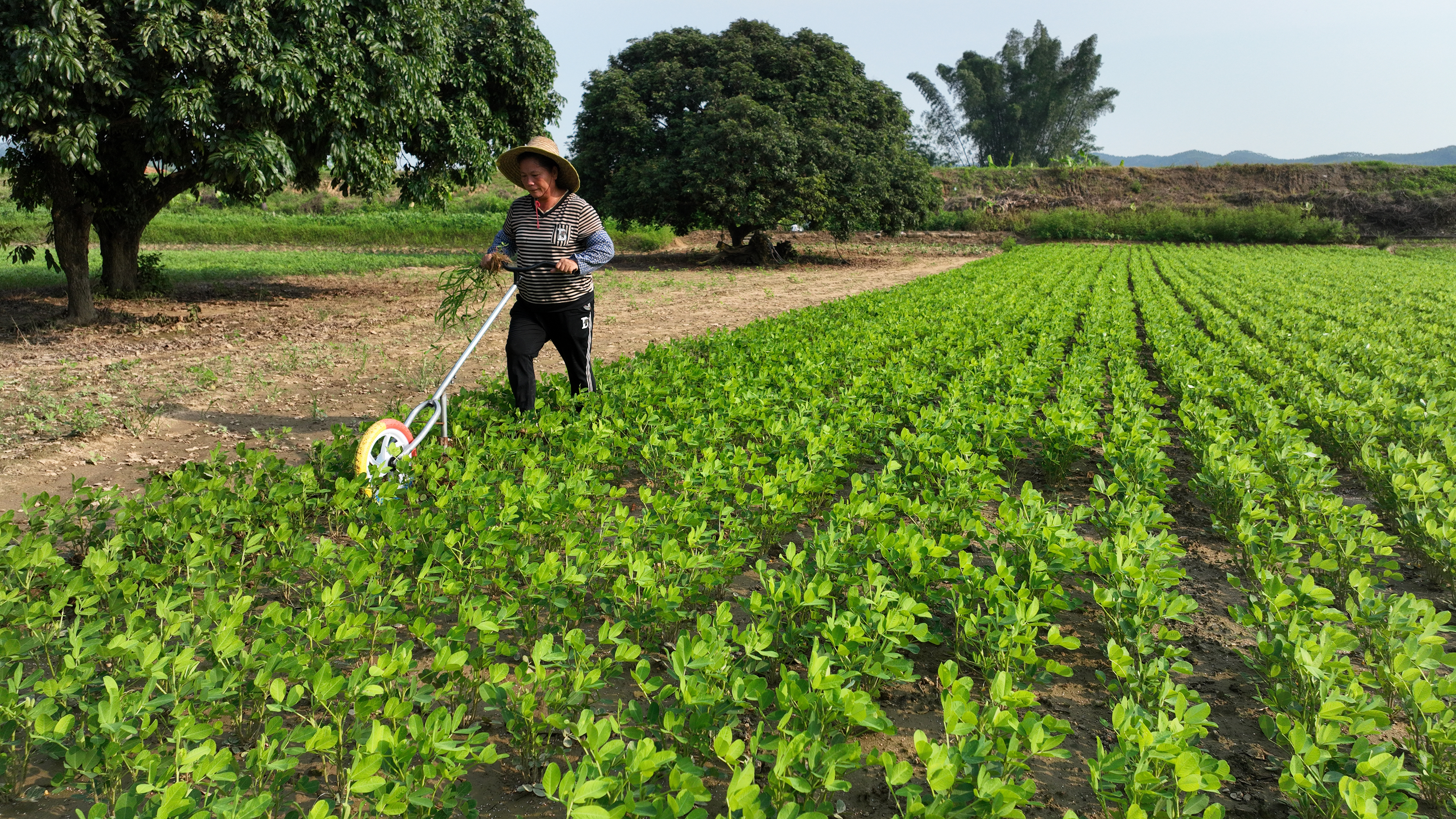 博羅縣觀音閣鎮(zhèn)泳新村村民為花生施肥;葜萑?qǐng)?bào)記者鐘暢新 攝