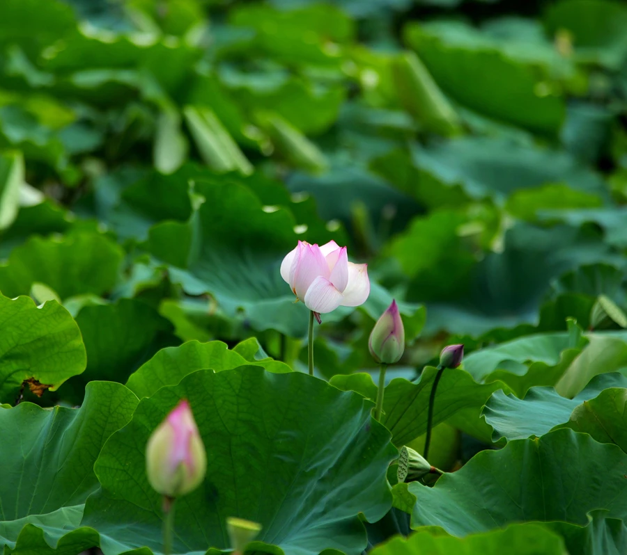 綻放的荷花,在陽(yáng)光下展現(xiàn)美妙的身姿。