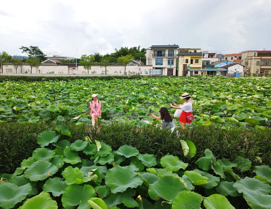 “接天蓮葉無(wú)窮碧,映日荷花別樣紅”的美麗畫(huà)卷在博羅三嘉村鋪開(kāi)。
