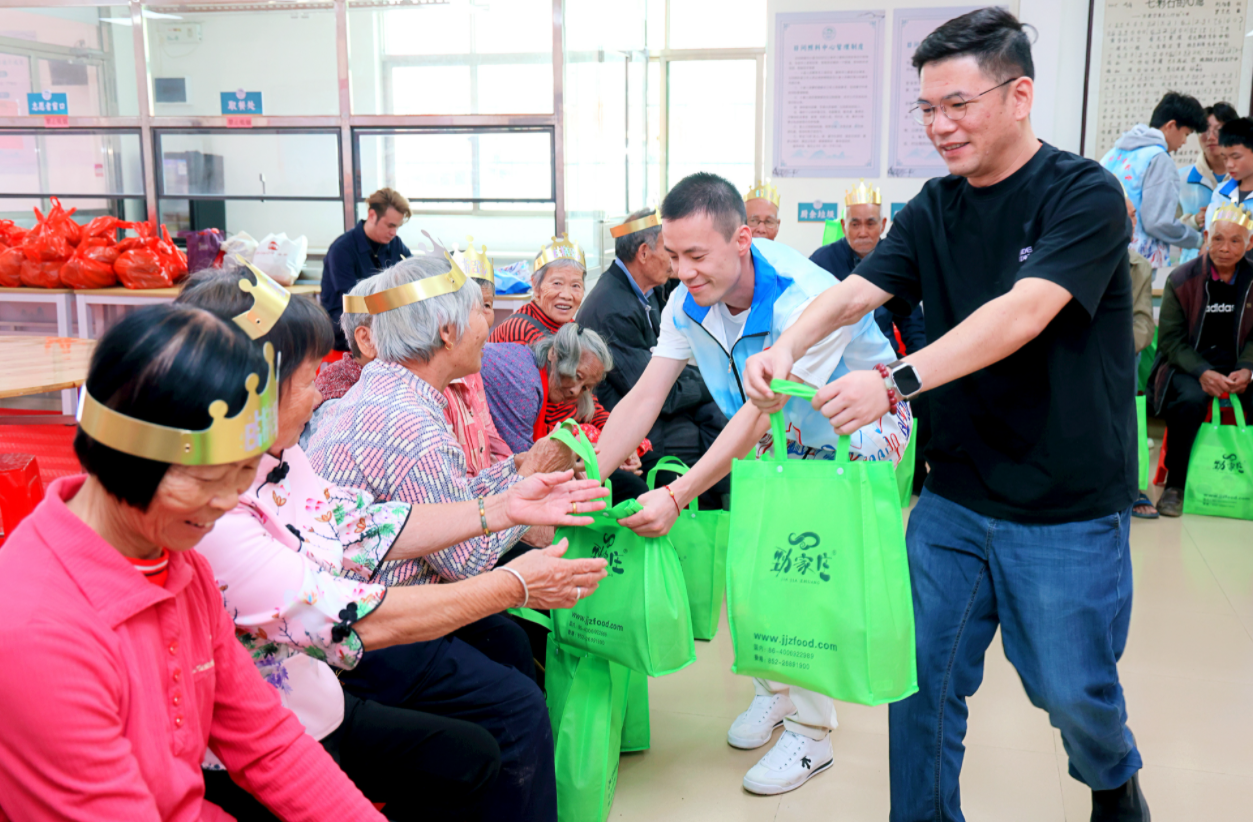生日會(huì)正式開(kāi)始后,三家愛(ài)心機(jī)構(gòu)代表依次為長(zhǎng)者送上祝福。龍茂實(shí)業(yè)黨支部長(zhǎng)期支援食堂米糧;花點(diǎn)心思糕點(diǎn)店持續(xù)捐贈(zèng)愛(ài)心蛋糕;惠城青創(chuàng)會(huì)則帶來(lái)千余斤香蕉及玉米汁、番薯面等禮品,多位青年企業(yè)家也來(lái)到現(xiàn)場(chǎng)做志愿者,傳遞敬老之情。下源村長(zhǎng)者食堂特別向三家機(jī)構(gòu)贈(zèng)送錦旗,以表謝意。