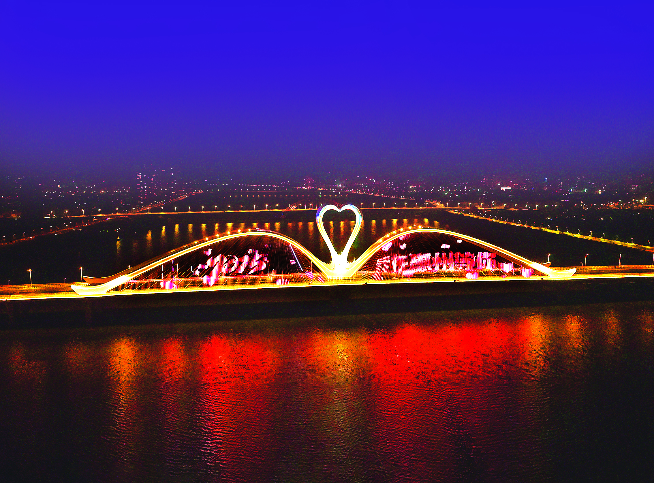 春節(jié)期間,鵝城大橋上演燈光秀,成為新熱門打卡地;葜萑?qǐng)?bào)記者鐘暢新 攝