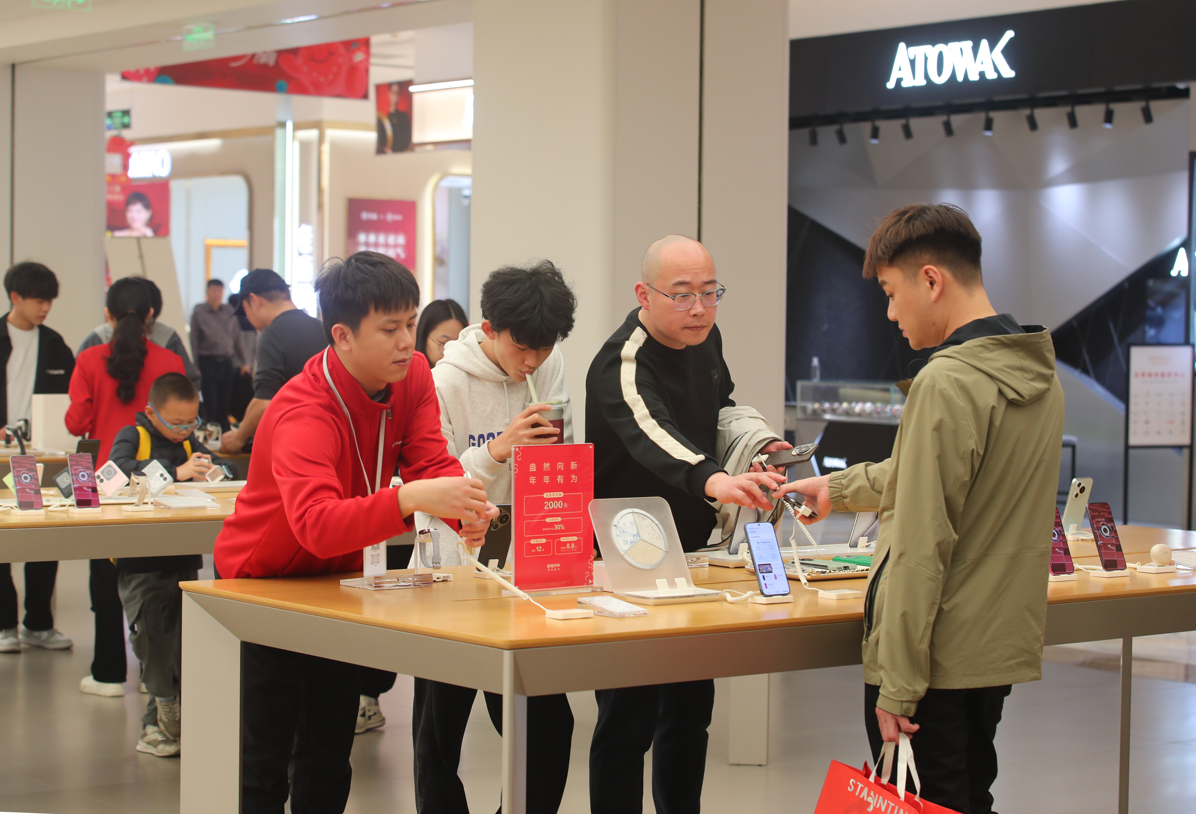 該店工作人員康敏紅介紹,“以舊換新”新一輪國(guó)補(bǔ)啟動(dòng)后,手機(jī)、平板等納入國(guó)補(bǔ)范圍,迅速激發(fā)了市民的消費(fèi)熱情。“從1月21日到26日,店里每天的銷售額都可以達(dá)到新國(guó)補(bǔ)政策出來(lái)前的3倍左右。春節(jié)前兩天,可能大家都忙著買年貨,打掃衛(wèi)生,銷售額有所回落。但大年初一到初三,銷售額又迅速上漲到年前的兩倍左右。”