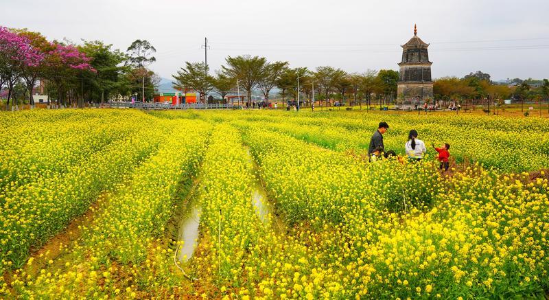春節(jié)假期,在惠城區(qū)橫瀝鎮(zhèn)墨園村、新榮村,三棟鎮(zhèn)子溪新村的紫溪半島等地,田野里花香撲鼻而來,絢爛的陽光溫柔地?fù)肀е@片土地,一片片油菜花開得正艷,吸引了市民游客帶著孩子紛至沓來,共赴春天之約。在花海中,人們盡情享受田園風(fēng)光帶來的愜意與寧靜,感受屬于自己的田園牧歌;葜萑請笥浾咧旖鹳 攝