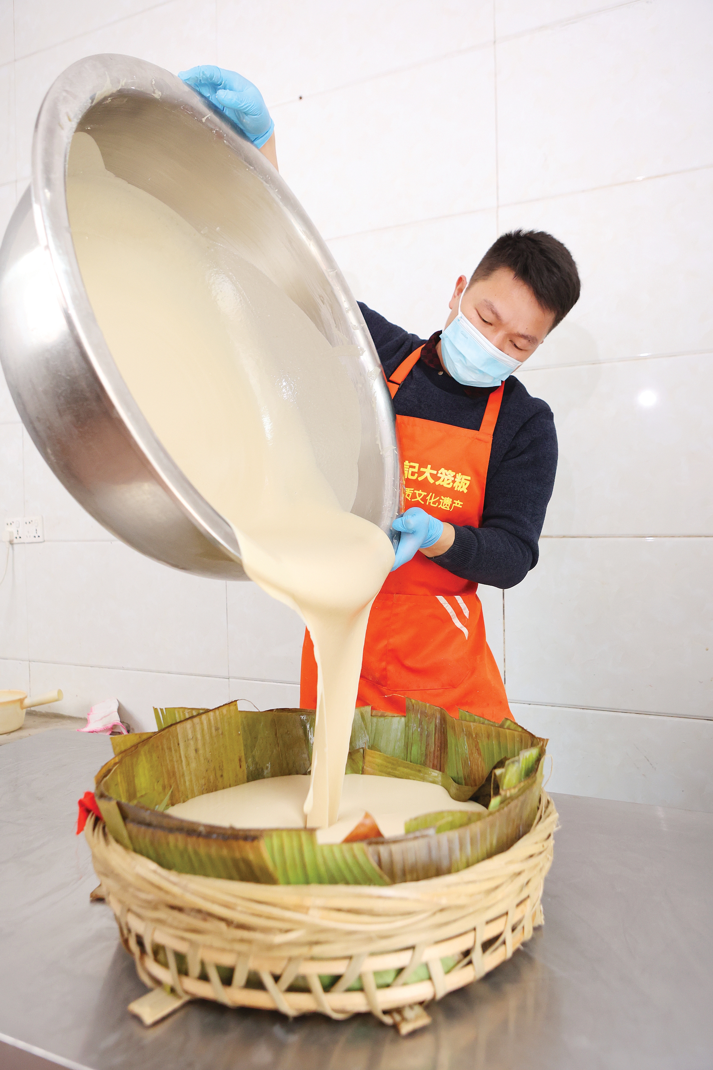 這些年,黃俊杰欣喜地看到,大籠粄“走”得越來越遠(yuǎn)。黃俊杰是一名90后,他從小到大跟著父親一起做大籠粄。2014年,考慮到父親年紀(jì)漸長(zhǎng),傳統(tǒng)技藝需要有人“接棒”,同時(shí)也為了照顧家庭,他辭去了外地的工作,選擇回鄉(xiāng)繼承父親的生意。為了讓這項(xiàng)傳統(tǒng)事業(yè)發(fā)展得更好,他建設(shè)了生產(chǎn)車間,引進(jìn)生產(chǎn)設(shè)備,在堅(jiān)持傳統(tǒng)技藝的同時(shí)改進(jìn)工藝,確保制作出來的大籠粄更安全、衛(wèi)生、美味。他還對(duì)大籠粄的口味和形狀進(jìn)行創(chuàng)新,推出黑米、姜汁、艾草味大籠粄,設(shè)計(jì)獅頭、麒麟形狀的文創(chuàng)類產(chǎn)品,豐富大籠粄的口味和文化內(nèi)涵。
