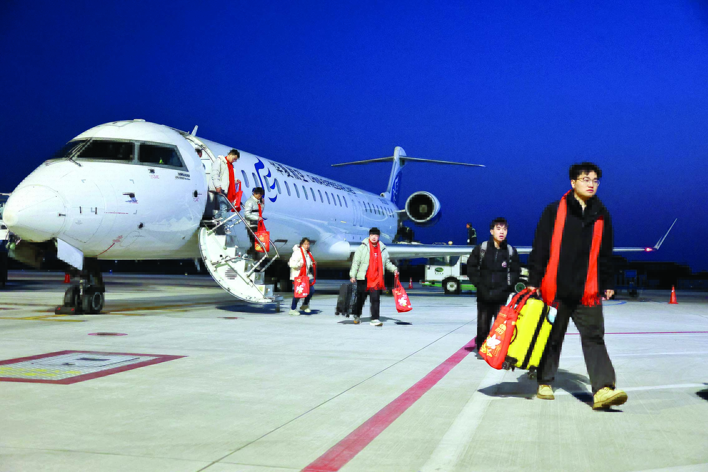 2月4日傍晚,一架從貴州黔西南州興義萬峰林機場起飛的返崗專機,安全降落惠州平潭機場。這趟班機是惠州市2025年返崗務(wù)工包機;葜萑請笥浾呃钏蓹(quán) 攝