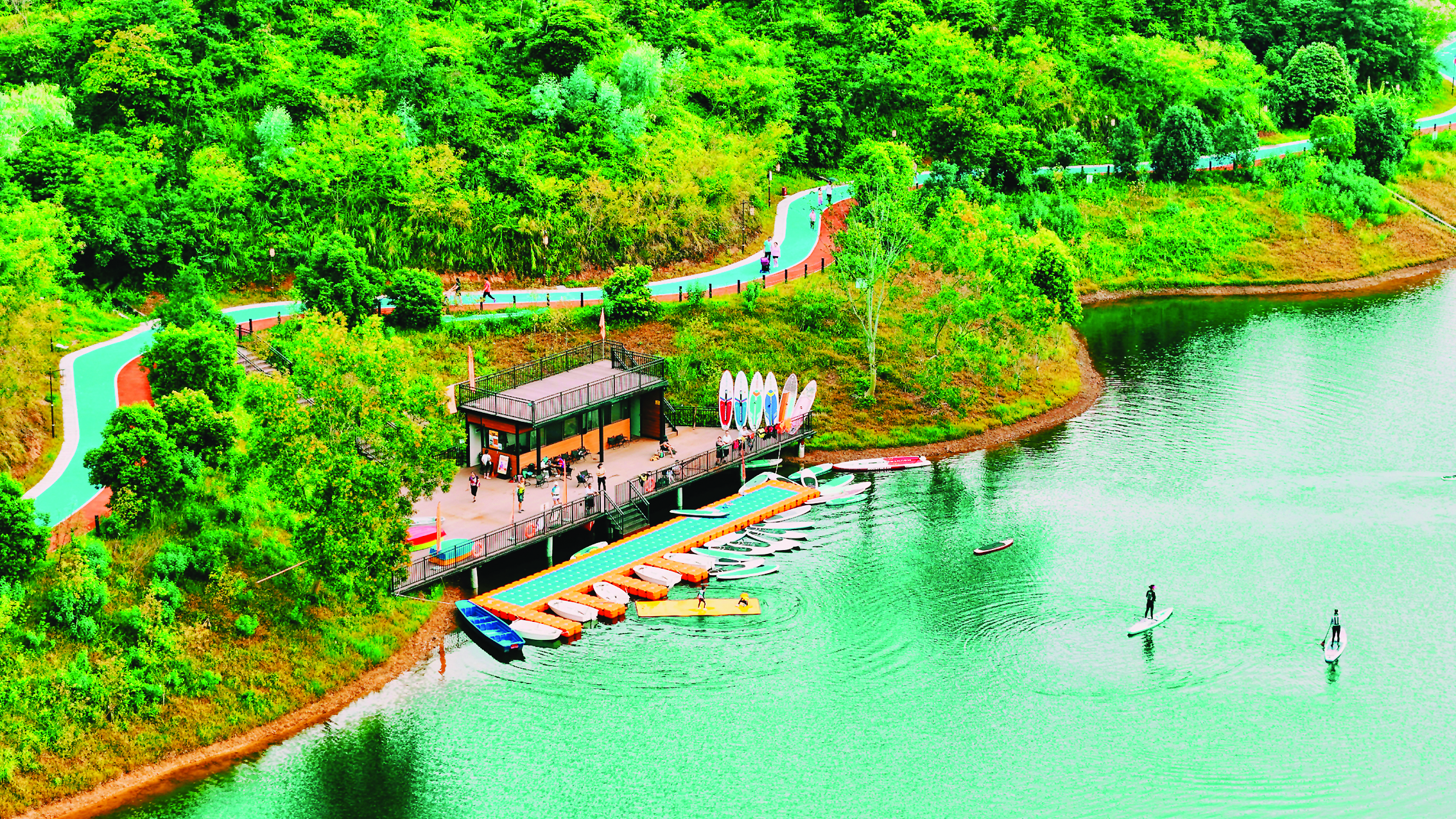 惠州桃花源水上運動中心的水上槳板運動為市民帶來新體驗;葜菔兴痔峁