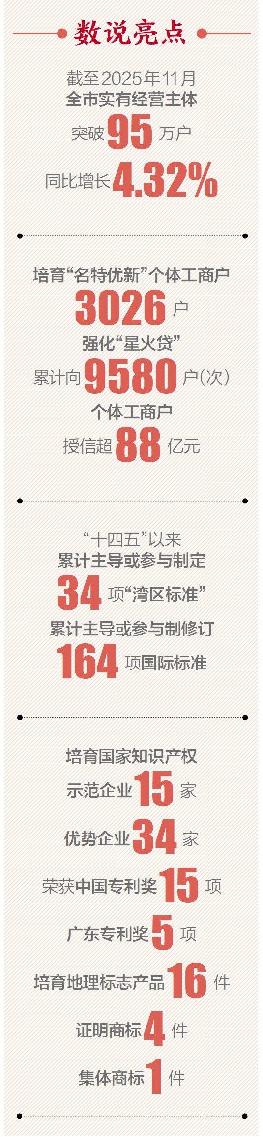 營商環(huán)境是企業(yè)生存發(fā)展的土壤。“十四五”以來,惠州聚焦企業(yè)群眾關(guān)切,精準施策打出優(yōu)化營商環(huán)境“組合拳”,吸引經(jīng)營主體加速布局。截至2025年11月,全市實有經(jīng)營主體突破95萬戶,同比增長4.32%,其中企業(yè)36.23萬戶,同比增長7.93%;個體工商戶58.49萬戶,同比增長2.23%。同時,健全經(jīng)營主體幫扶政策,培育“名特優(yōu)新”個體工商戶3026戶,強化“星火貸”,累計向9580戶(次)個體工商戶授信超88億元,深入推進“粵質(zhì)貸”,賦能企業(yè)高質(zhì)量發(fā)展。