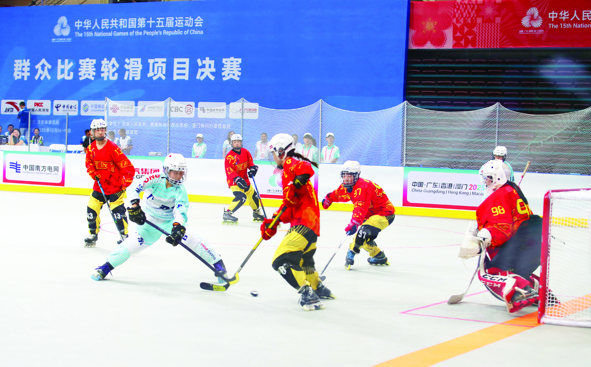 10月17日上午,第十五屆運(yùn)動(dòng)會(huì)群眾比賽單排輪滑球項(xiàng)目決賽進(jìn)入白熱化階段。在這場(chǎng)對(duì)決中,廣東隊(duì)?wèi){借出色的團(tuán)隊(duì)協(xié)作與強(qiáng)勁的競(jìng)技實(shí)力,以8:0的比分完勝河北隊(duì),展現(xiàn)出壓倒性的優(yōu)勢(shì)。