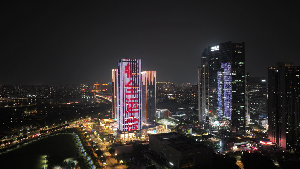 江北中海廣場(chǎng)亮燈為十五運(yùn)會(huì)打call。惠州日?qǐng)?bào)記者張藝明 攝