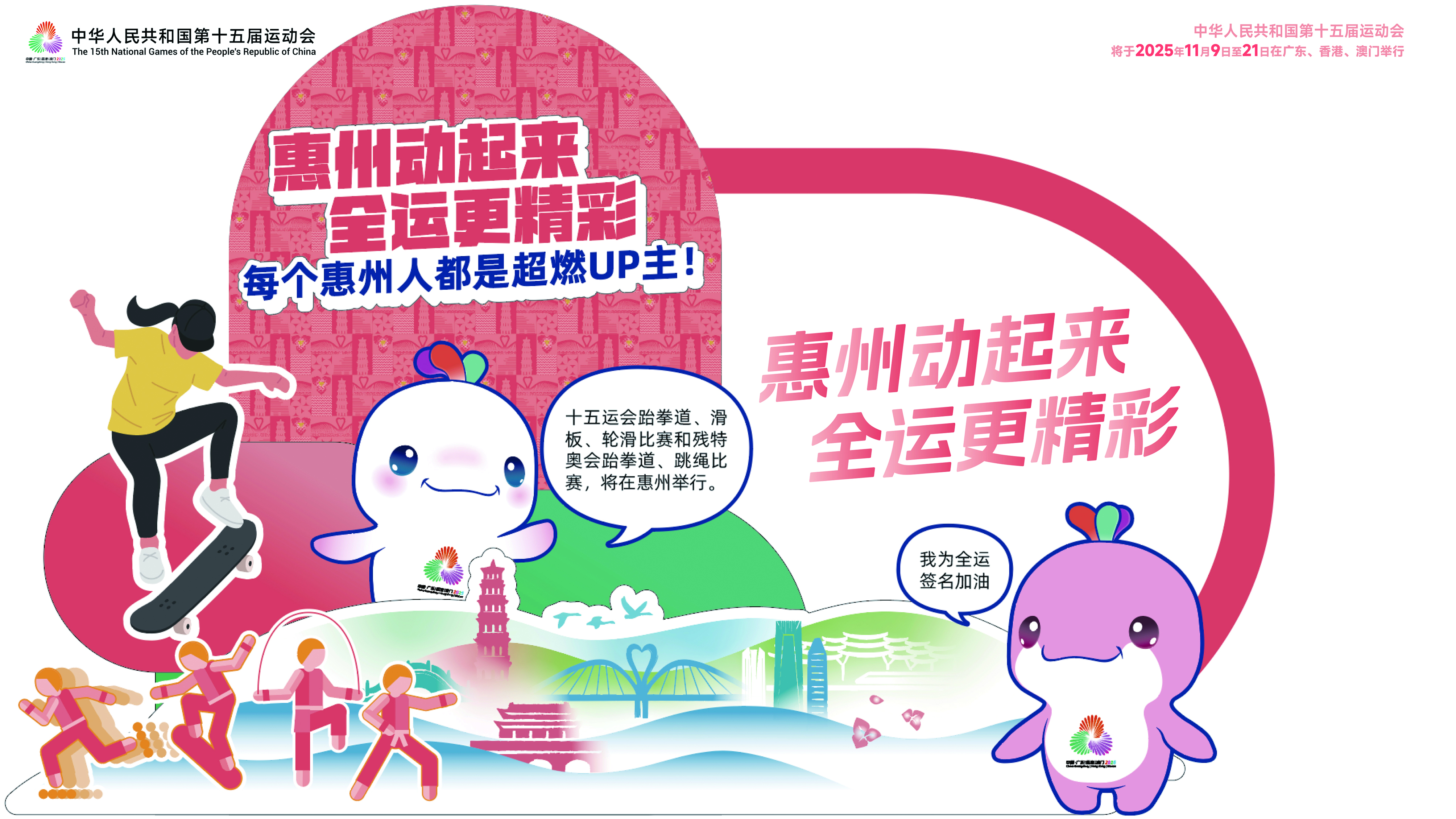觀眾的這份熱情,源于惠州精心的賽事推廣。在市區(qū)主要道路,1000套道旗迎風招展;在商業(yè)中心,6處美陳打卡點成為網紅地標;400輛“全運主題巴士”穿行在大街小巷;在各大交通站點、商業(yè)中心、小區(qū)樓宇內都可以看到全運會的宣傳視頻和海報。