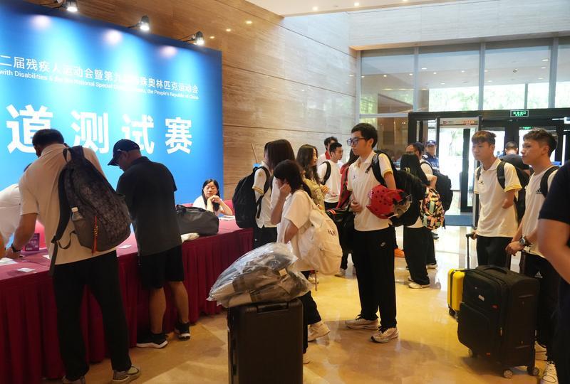 6月25日下午,參加跆拳道測試賽的裁判員、運動員陸續(xù)抵達(dá)惠州報到。 惠州日報記者朱金贊 攝