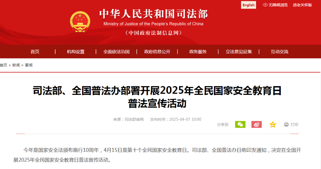 今年是國家安全法頒布施行10周年,4月15日是第十個(gè)全民國家安全教育日。司法部、全國普法辦日前印發(fā)通知,決定在全國開展2025年全民國家安全教育日普法宣傳活動(dòng)。