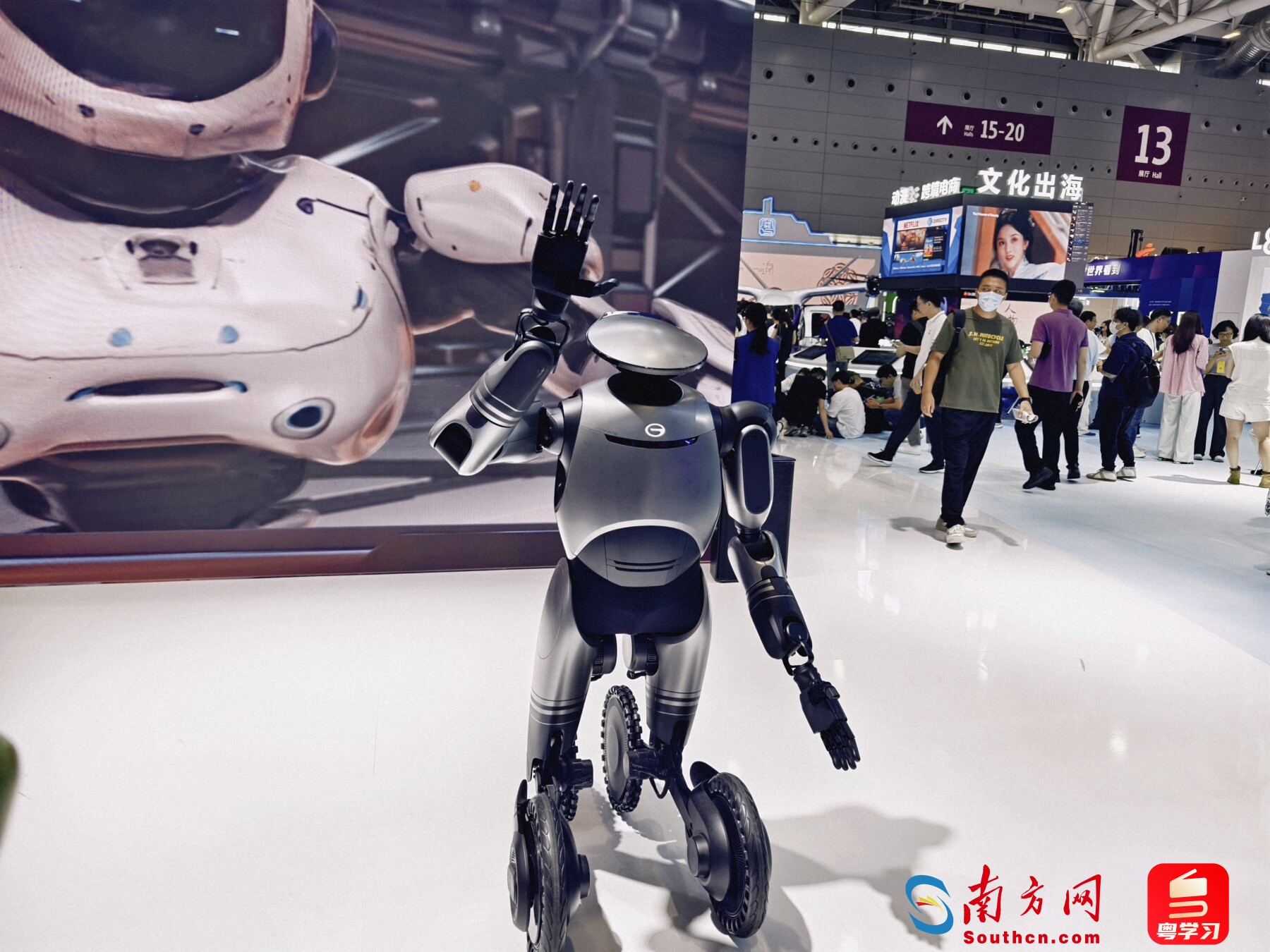 這次展會(huì)期間,美女機(jī)器人文文還擔(dān)任了文博會(huì)講解員,在文博會(huì)入口的咨詢前臺(tái)、展館會(huì)場都能見到它的身影。