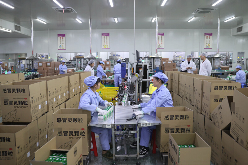 “這個(gè)車間3條線,一天生產(chǎn)4000多箱的感冒靈顆粒!鳖w粒劑車間主任許士敬老家在安徽,今年春節(jié)期間堅(jiān)守崗位!坝唵味唷⑷蝿(wù)重,公司春節(jié)期間生產(chǎn)不打烊,留在惠州過年也挺好的。”