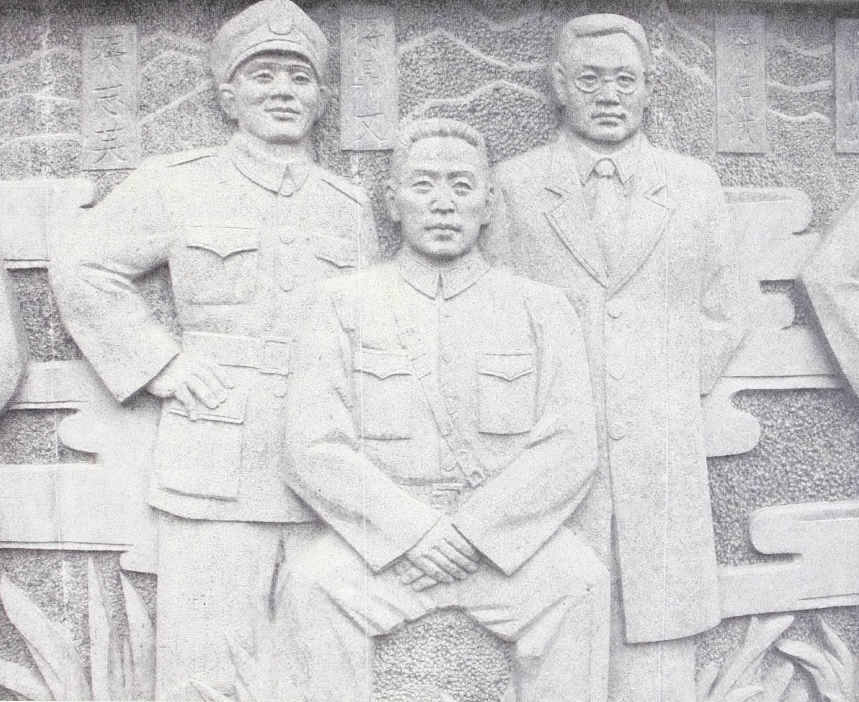 圖為諸暨市浬浦鎮(zhèn)盤(pán)山村的抗戰(zhàn)英雄浮雕像,左一為蔣志英(資料照片)。新華社發(fā)(諸暨市委宣傳部供圖)