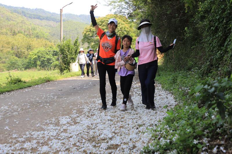 “陽春三月,杜鵑花盛開;初夏,油桐花綻放;深秋,龍蝦花開;冬天,李花又開!毙凶咴谶B通雞籠山村、寶溪村的山間古道,雞籠山村黨支部書記、村委會主任黃國強如數家珍地向記者介紹這里游玩的愜意。