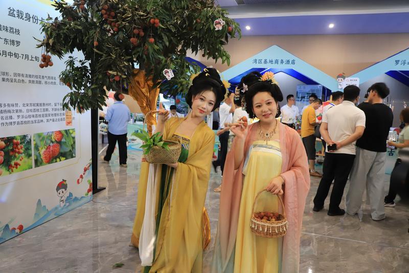 市民穿古裝推介惠州荔枝。