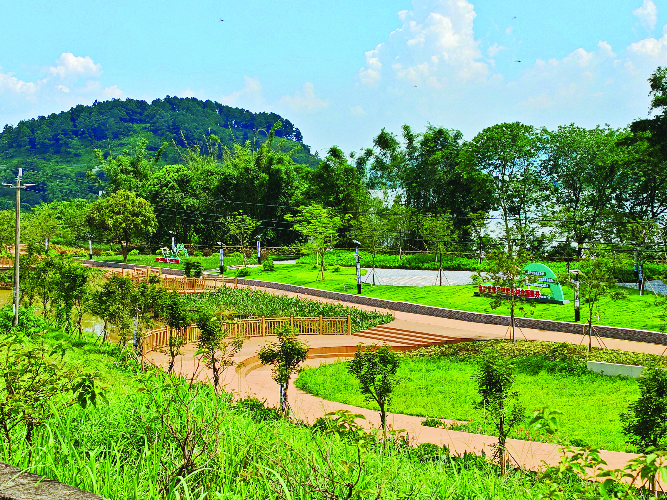 秋日微風(fēng)拂過東江兩岸,連片的龍門小青瓦屋頂在陽光下泛著溫潤光澤。在惠城區(qū)橫瀝鎮(zhèn)“水墨田園·五彩共富”美麗鄉(xiāng)村走廊的濕地公園里,游客漫步木棧道,不由贊嘆:“沒想到鄉(xiāng)村變得這么美!”