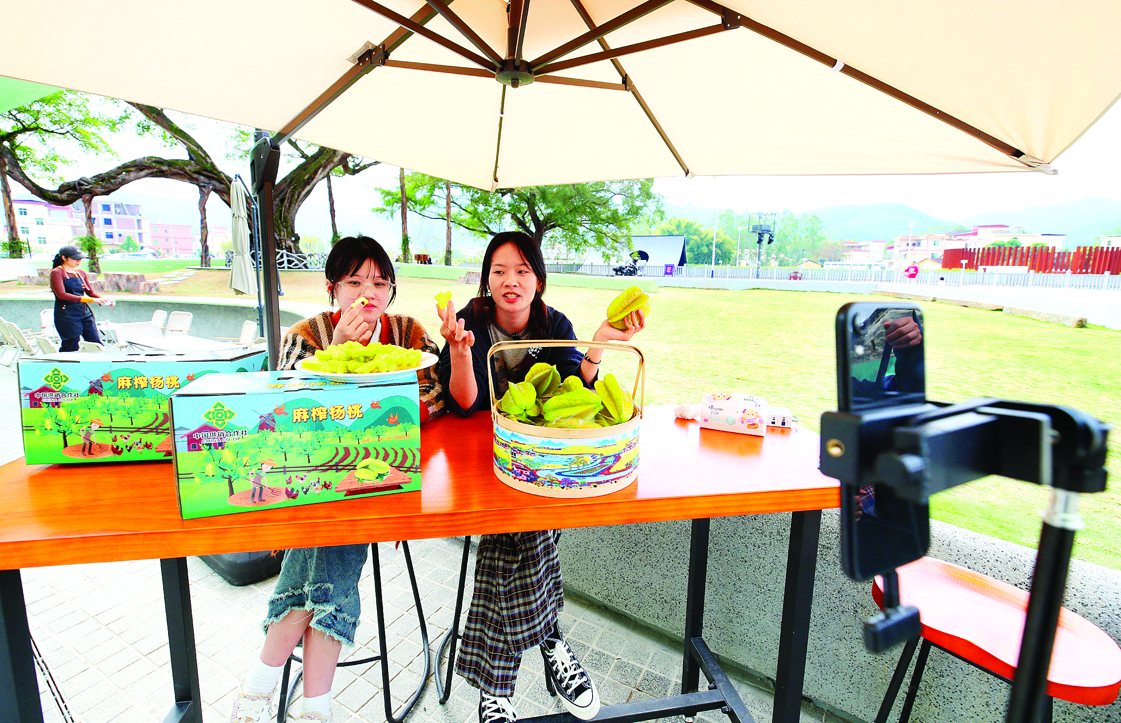 線上渠道同樣火熱。服務(wù)站內(nèi)設(shè)立的直播助農(nóng)平臺,正通過電商平臺將麻榨楊桃銷往全國。