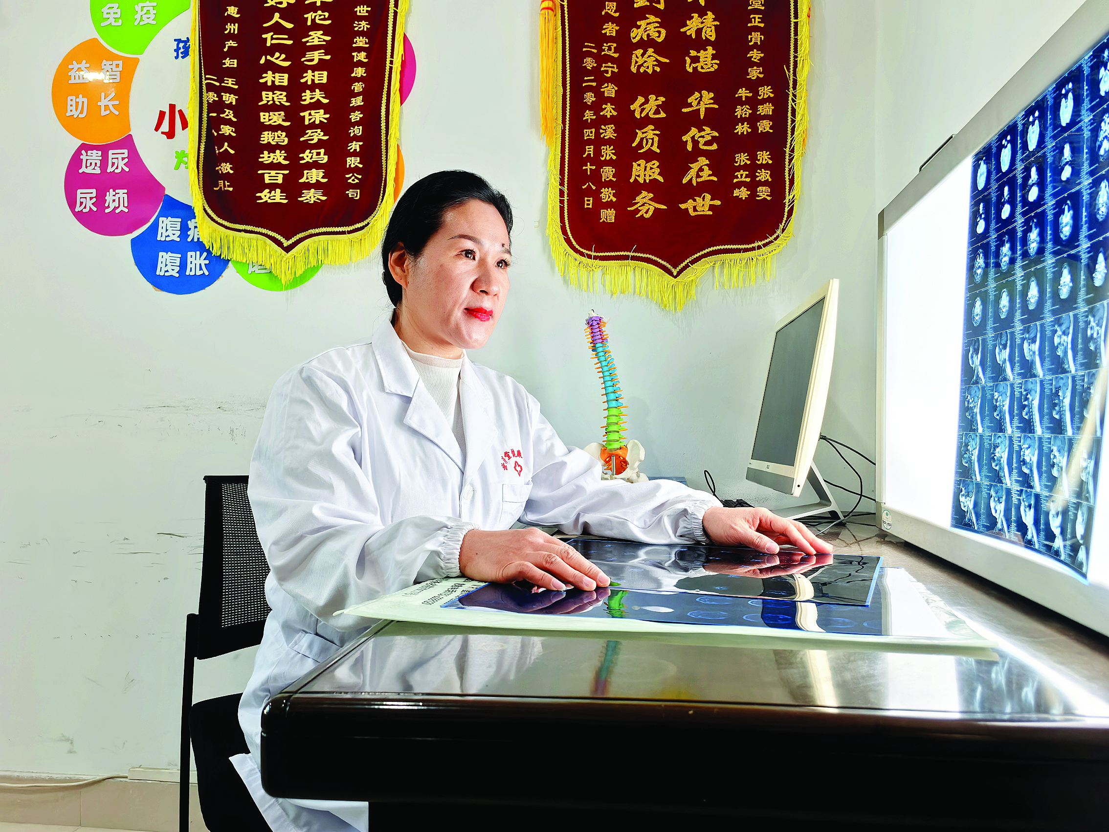 診室里彌漫著淡淡艾草香,一位脊椎側(cè)彎患者趴在治療床上,張瑞霞雙手輕推肩頸!伴L(zhǎng)期伏案,頸椎已經(jīng)變形了!彼p聲說(shuō),“平時(shí)要多活動(dòng)!