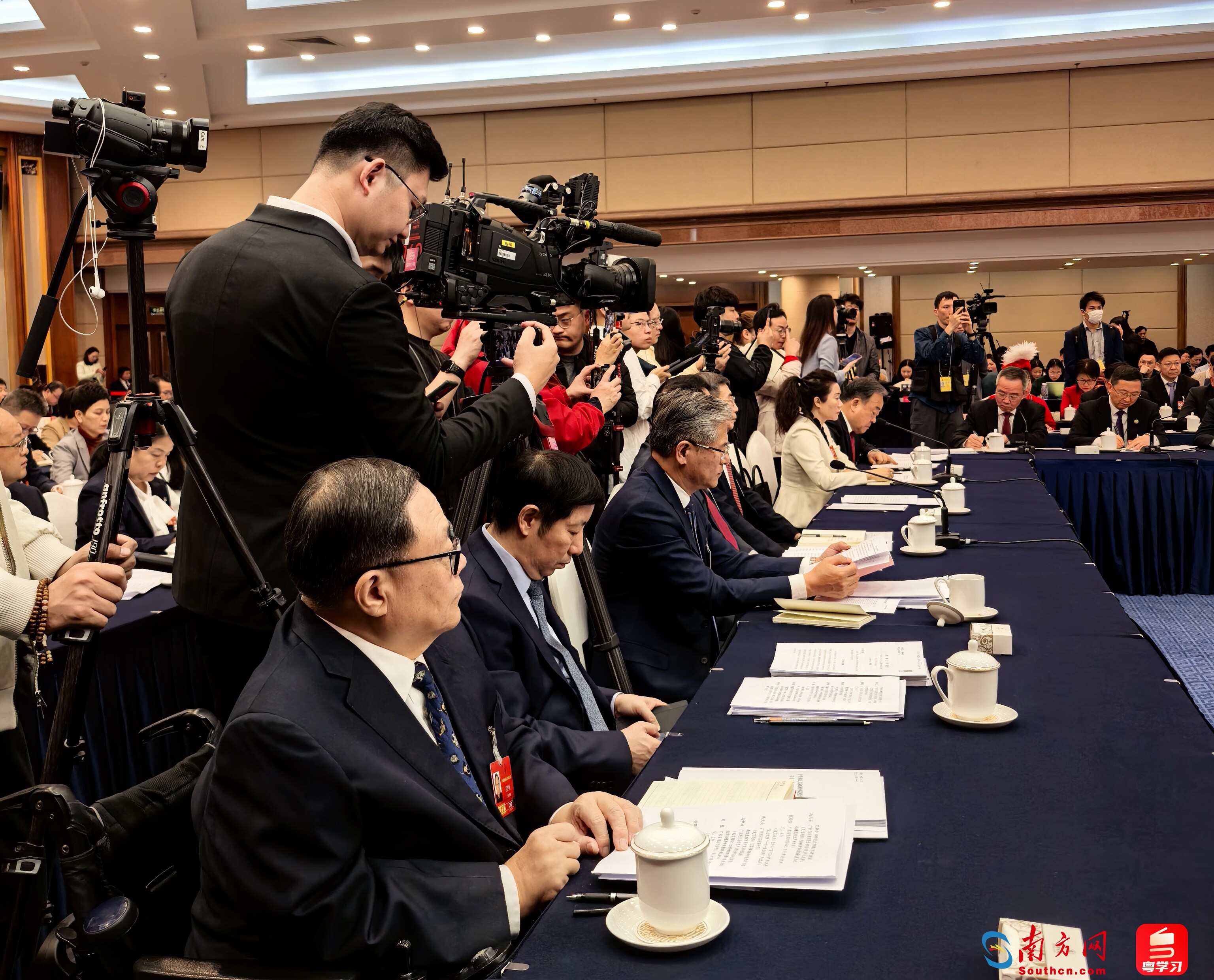 開放自信體現(xiàn)在會場的細節(jié)中。會議開始后,中外記者們自由進入會場內(nèi)采訪,近距離記錄和報道代表發(fā)言。這是廣東代表團連續(xù)第三年開放內(nèi)場拍攝區(qū),以零距離、全透明的姿態(tài)接受中外媒體監(jiān)督。