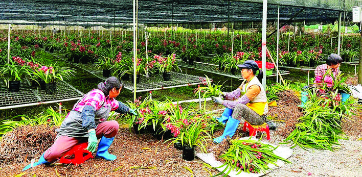 蘭花產(chǎn)業(yè)的蓬勃發(fā)展給當(dāng)?shù)卮迕駧?lái)就業(yè)機(jī)會(huì)。今年50多歲的鄔姨在基地負(fù)責(zé)種花、分株等工作!斑@里上班離家近,既能掙錢(qián)補(bǔ)貼家用,又能照顧老人孩子,日子過(guò)得很踏實(shí)。”鄔姨笑著說(shuō)。