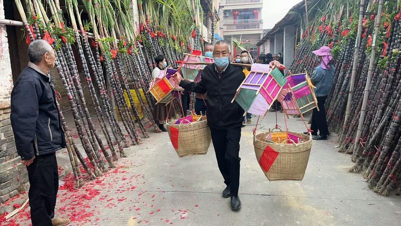 大年初一的龍華鎮(zhèn)寧和圩,早已被喜慶的鑼鼓聲包裹。一聲大鼓轟鳴破空而來,瞬間點(diǎn)燃了整個老圩的年味。這一天,鶴溪村、竹園村、寧和村及下轄十余個村組,紛紛亮出自家的“傳家大鼓”,鄉(xiāng)親們身著喜慶裝束,手擊大鼓、肩挎銅鑼,挑著綴滿喜氣的甘蔗、竹籮,踏著鼓點(diǎn),浩浩蕩蕩地出發(fā)迎燈。抵達(dá)寧和圩,迎燈隊伍便在此駐足響鼓。鑼鼓聲此起彼伏,仿佛一場熱鬧非凡的“斗鼓”大賽。鼓手們精神抖擻、揮臂揚(yáng)槌,鼓點(diǎn)時而沉穩(wěn)厚重,時而急促激昂,圍觀鄉(xiāng)親們的歡呼聲、喝彩聲與鼓樂聲交織在一起,將新春的喜悅推向高潮。